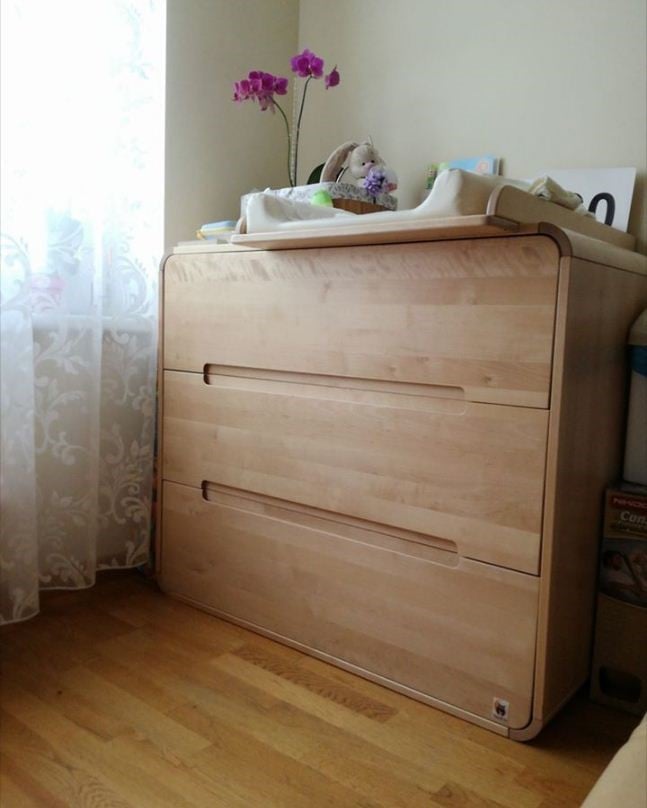 Tas ir ļoti ērts variants, jo viss nepieciešamais vienmēr ir mammai pie rokas un ir viegli pieejams. Piemēram, pampera maiņas laikā nekas nenovērš bērna uzmanību, viņu nevajag atstāt vienu pat uz sekundi. Var netērēt laiku atvilktņu atvēršanai un salvešu vai krēma meklēšanai.