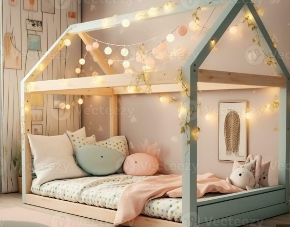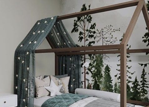 • Aizkari un baldahīni: Pievienojiet aizkarus vai baldahīnu, lai radītu noslēpumainu un mājīgu stūrīti. Tas arī sniegs bērnam privātuma sajūtu. Piemēram, YappyKids piedāvā dažādus aizkarus, kas lieliski saderēs ar gultu-mājiņu.
