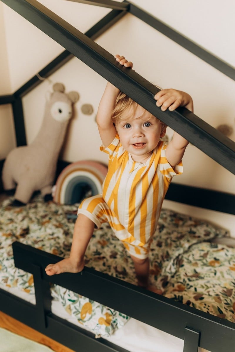 Esam ļoti apmierināti ar pirkumu no Yappy.lv Mazulim jau 6 mēneši un guļ savā YappyÉtude bērnu gultiņā no pirmās dienas. Noteikti iesaku papildus iegādāties šūpuļa mehānismu, veiksmes atslēga iemidzinot mazo uz nakti. Gultai ir maināmi augstumi tā kā noderēs ilgam laikam. Iegādājāmies arī pieskaņoti kumodi ar pārtinamo virsmu - liels palīgs gan mainot autiņus, gan veicot vingrojumus pirmos mēnešus. Nu jau mazais liels un plānojam pārtinamo virsmu noņemt un izmantot, kā skaistu kumodi bērnu drēbītēm.